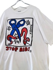 【"90's vintage Keith Haring" STOP AIDS art-printed tee】