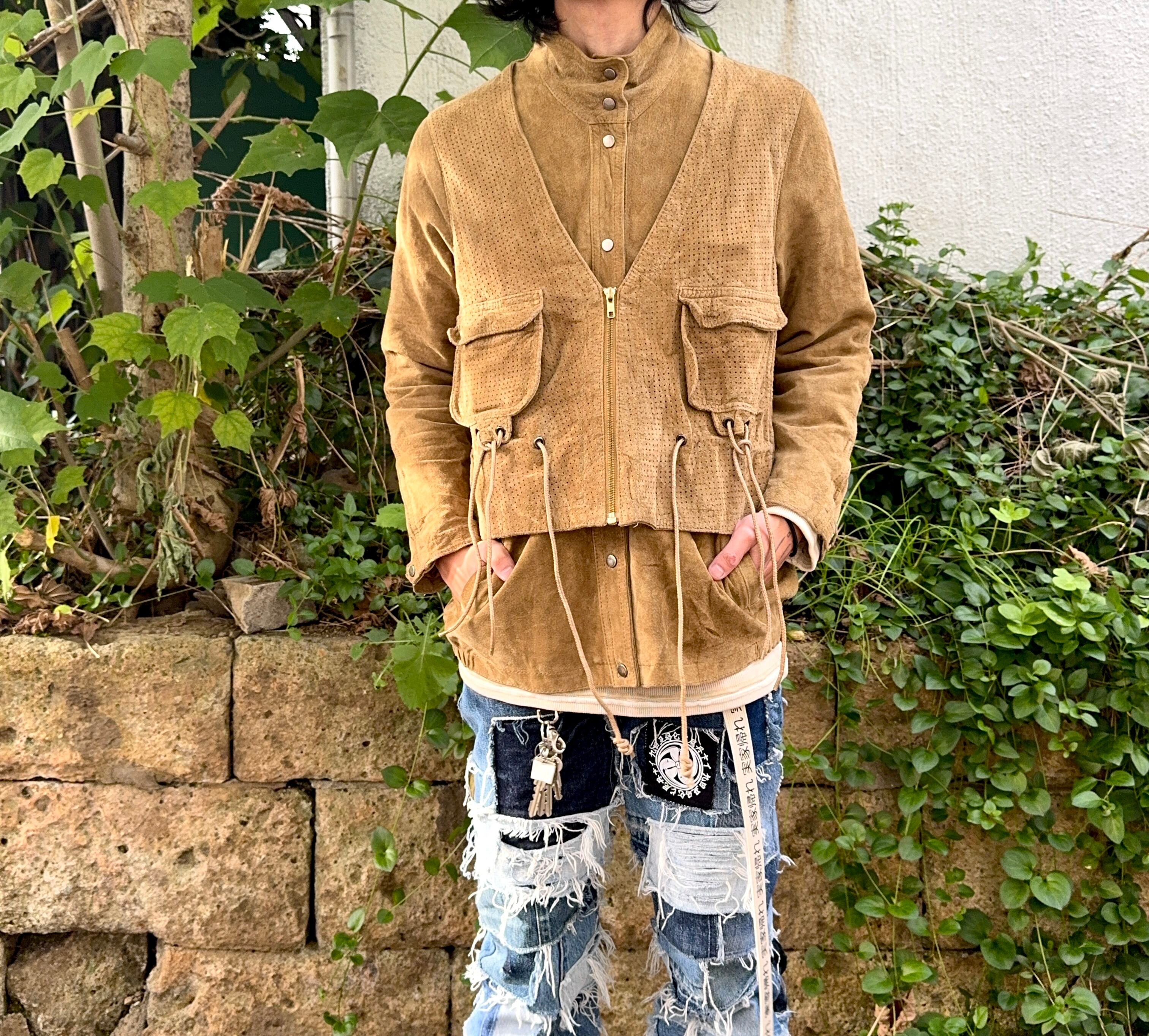 珍しいデザインが目を惹くスウェードレザージャケット。