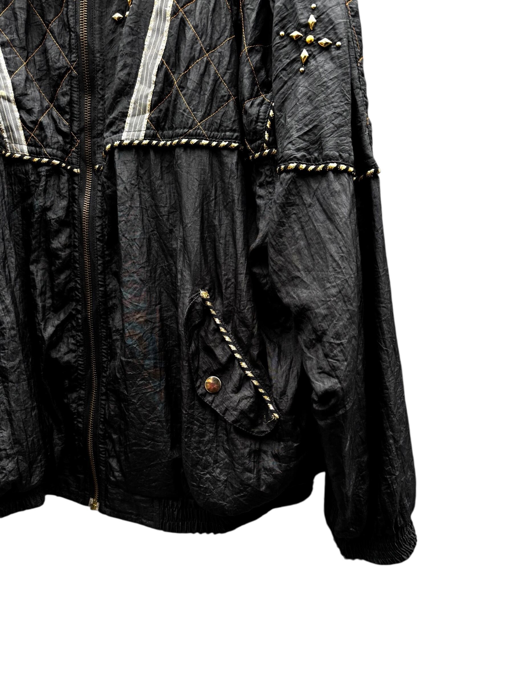 studs & quilting desing black nylon blouson / スタッズ & キルティング ブラックナイロンブルゾン ジャケット【USED/古着】