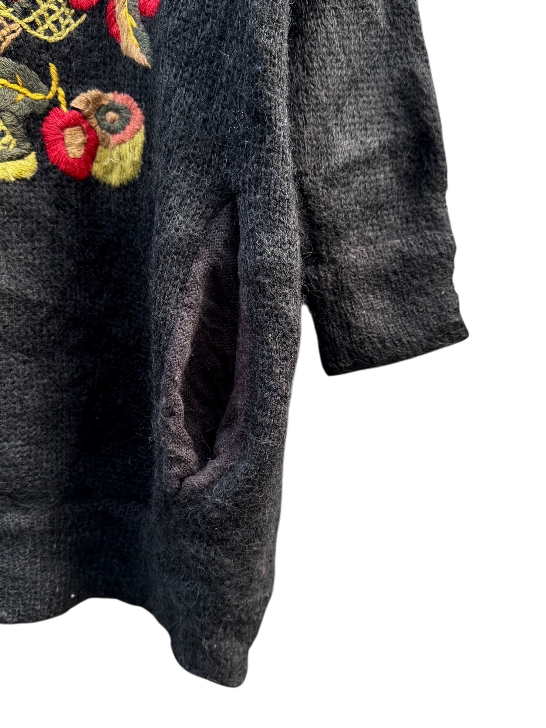 hand-embroidery vintage black mohair cardigan / 手刺繍 ヴィンテージ ブラックモヘアカーディガン【USED/古着】