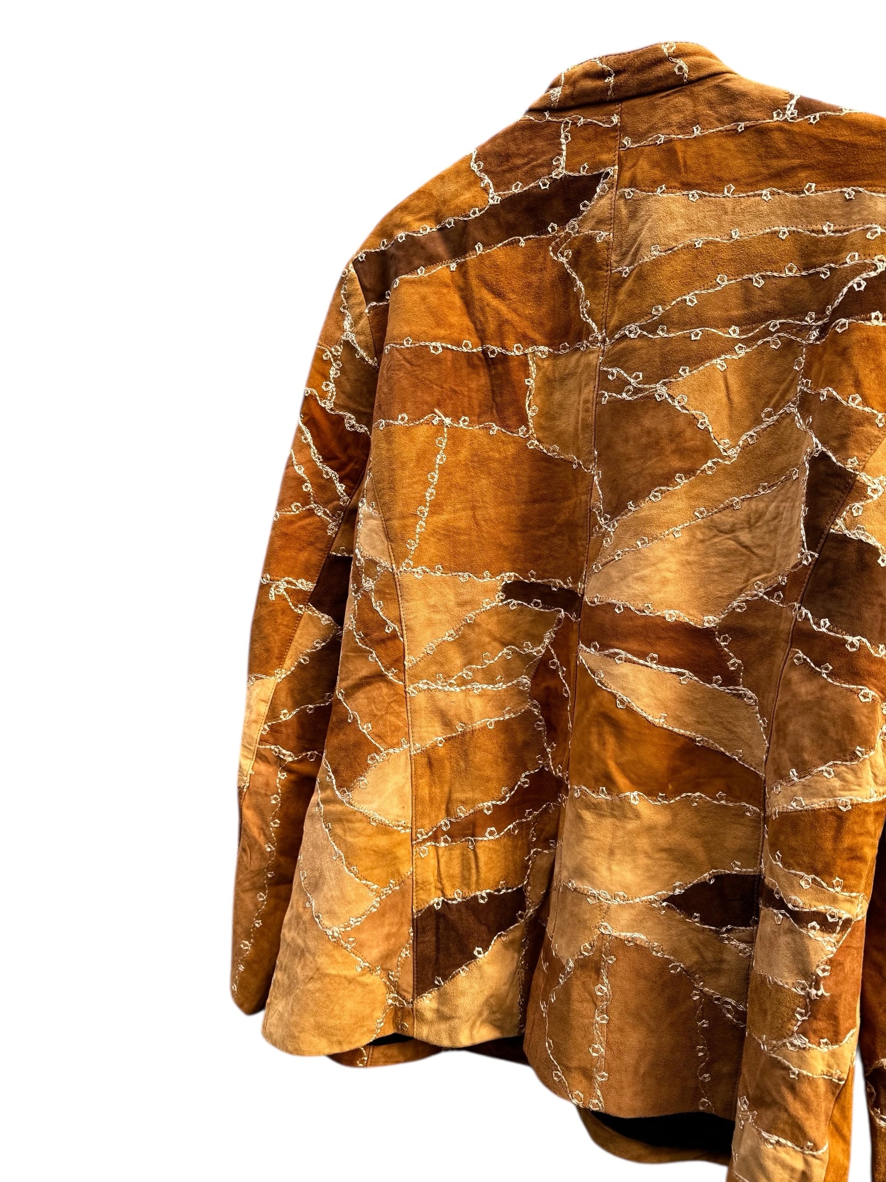 ツギハギ状になったスウェードレザーのパッチワークに、