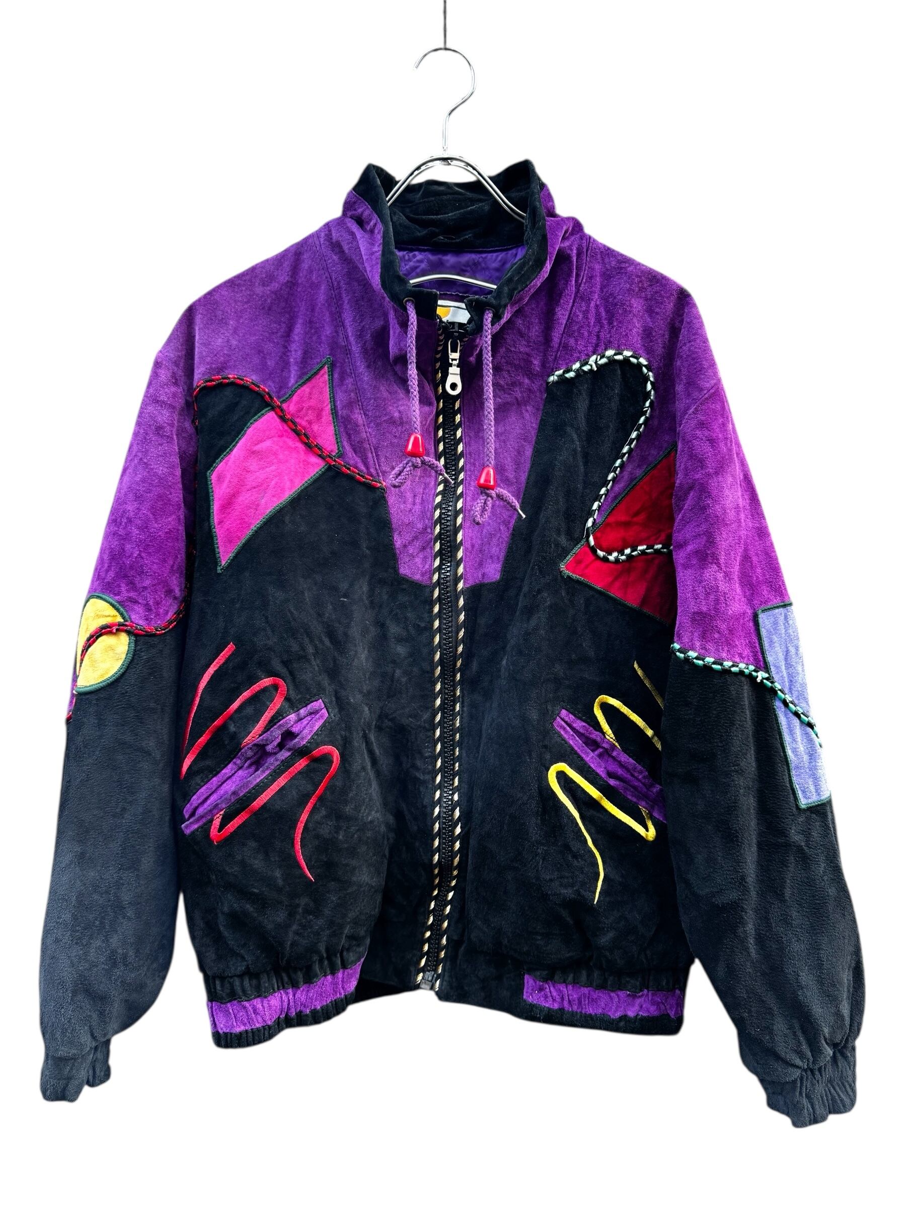 【80-90's vintage crazy-pattern suede leather jacket】