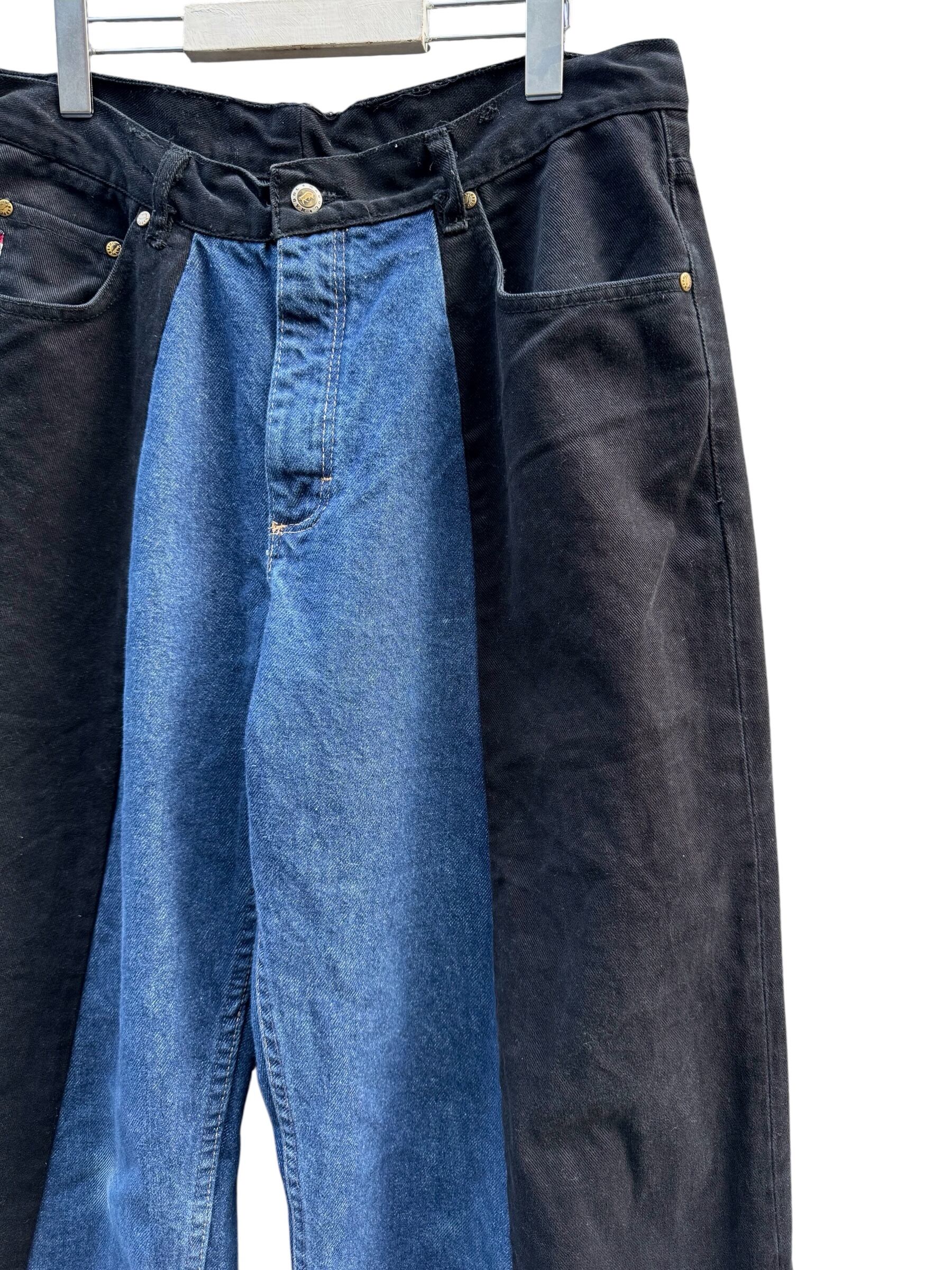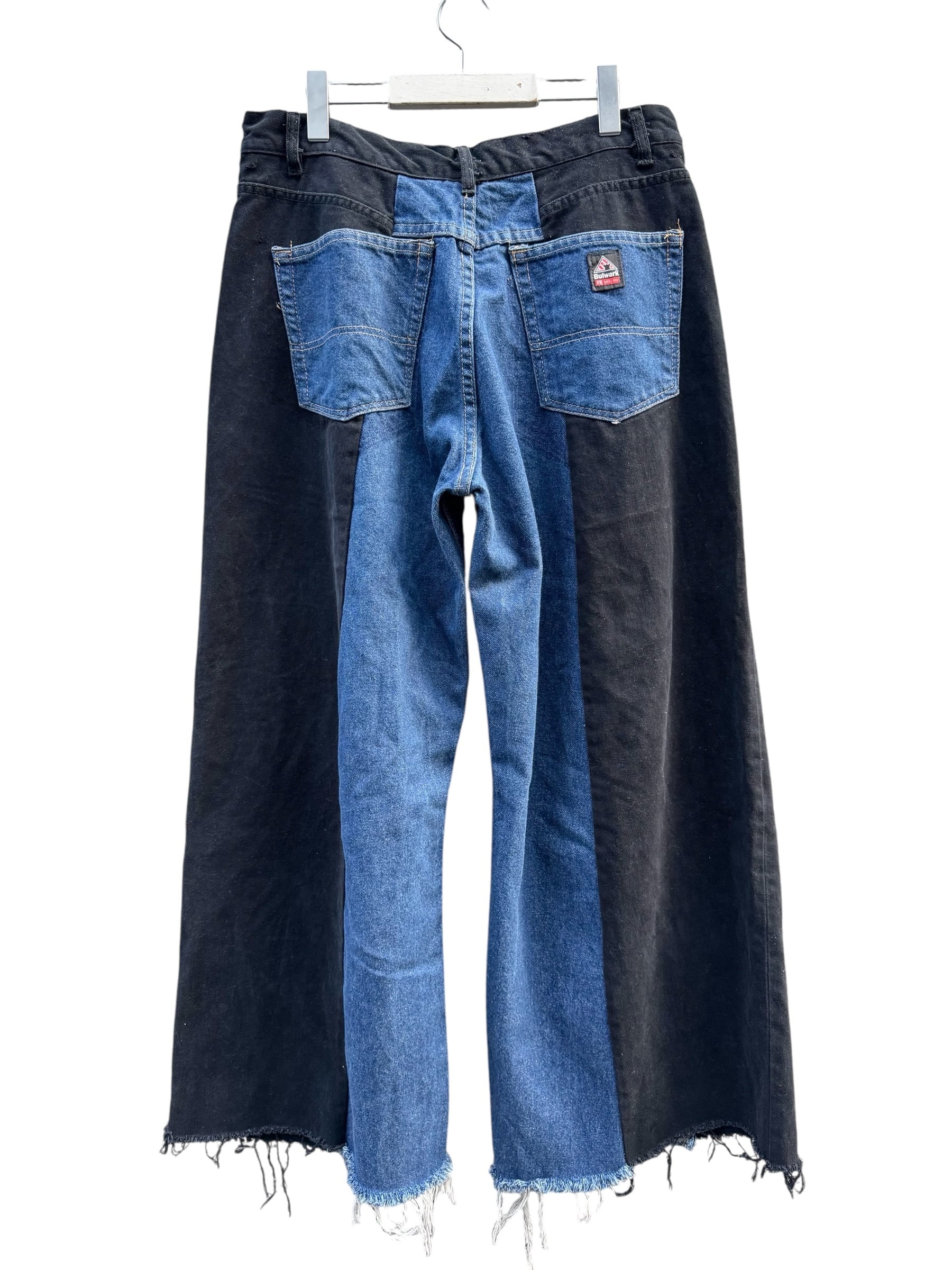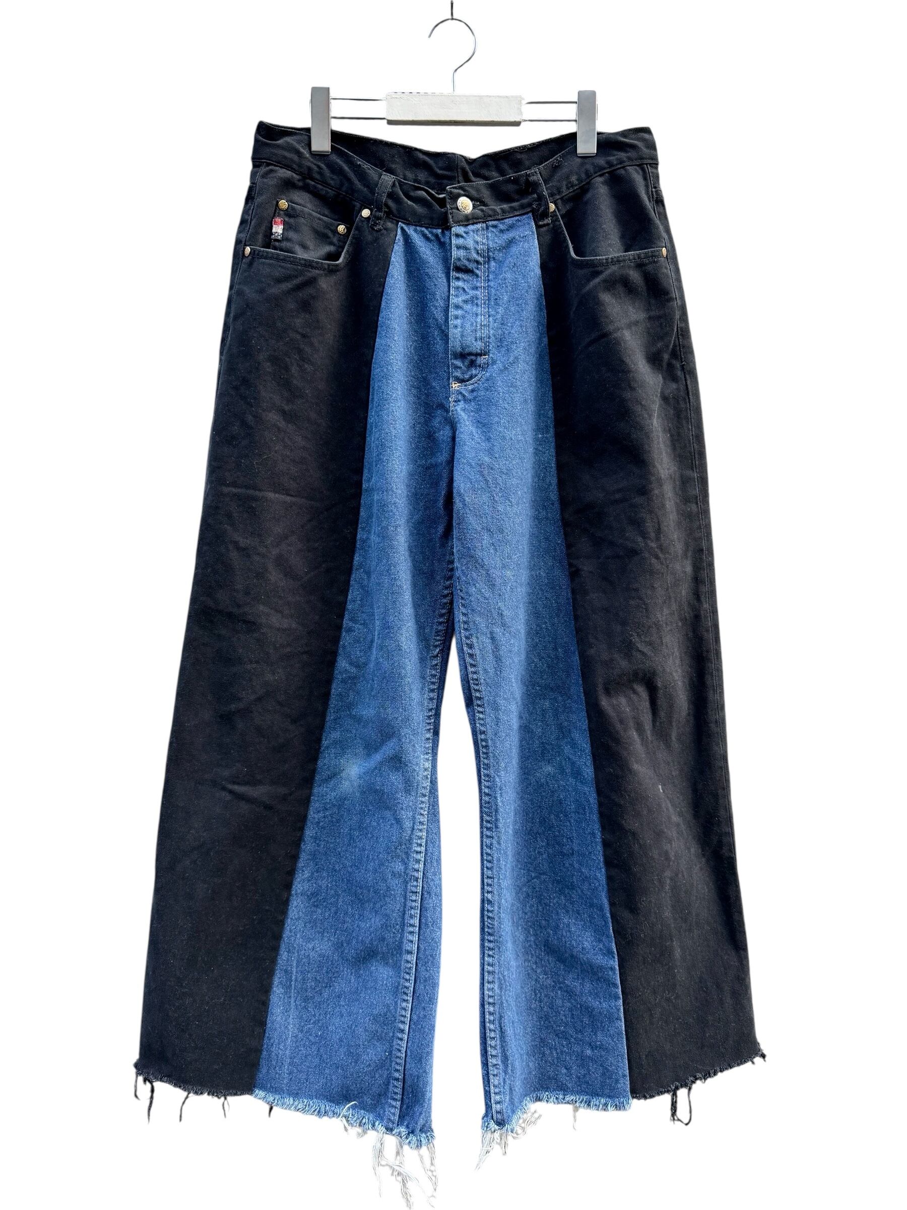 custom bicolor wide denim pants INDIGO × BLACK / カスタム リメイク バイカラーワイドデニムパンツ バギーデニムパンツ インディゴ×ブラック【USED/古着】