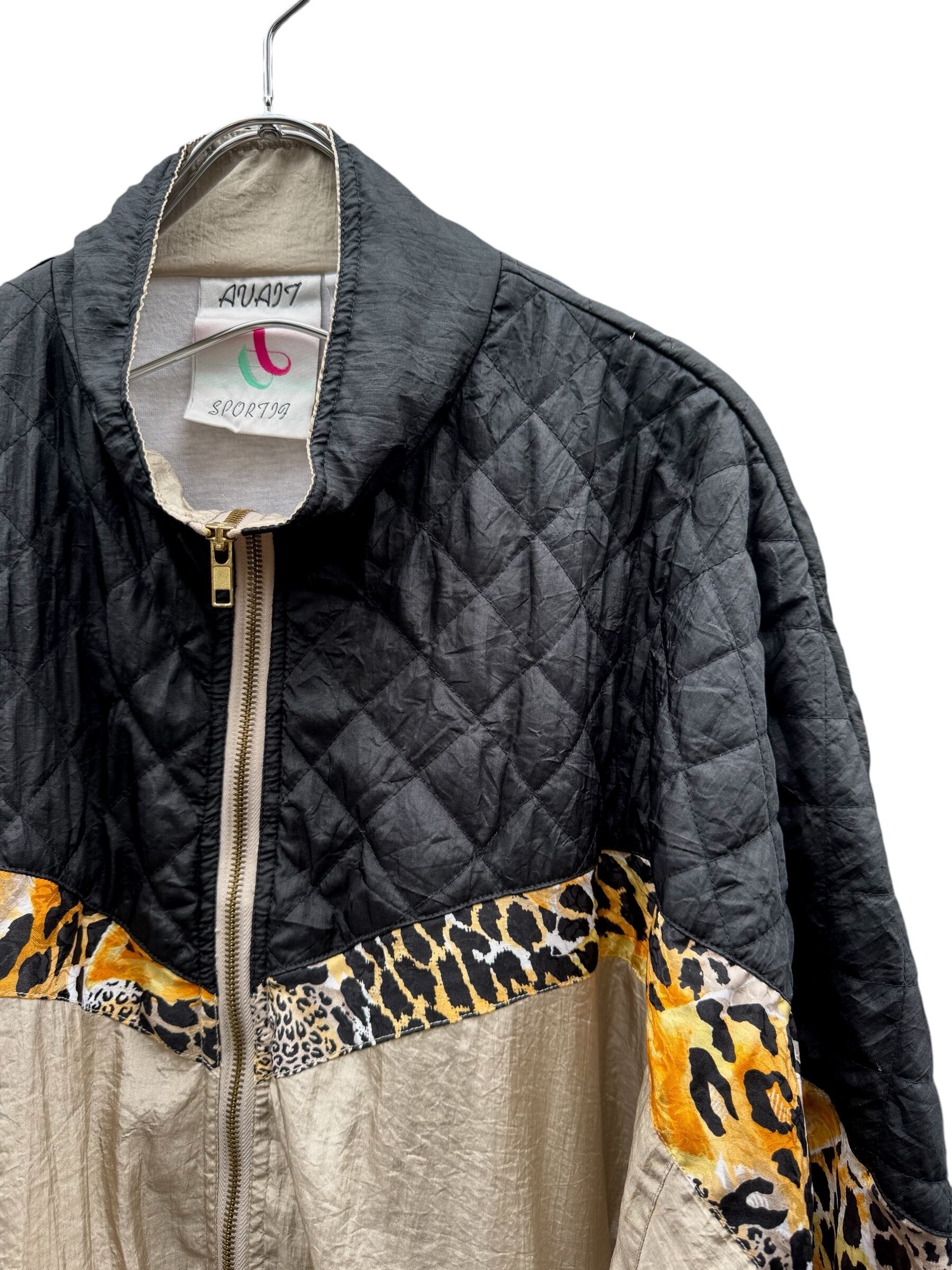 leopard-line swiching design nylon blouson / レオパード柄 切り替え ナイロンブルゾン【USED/古着】