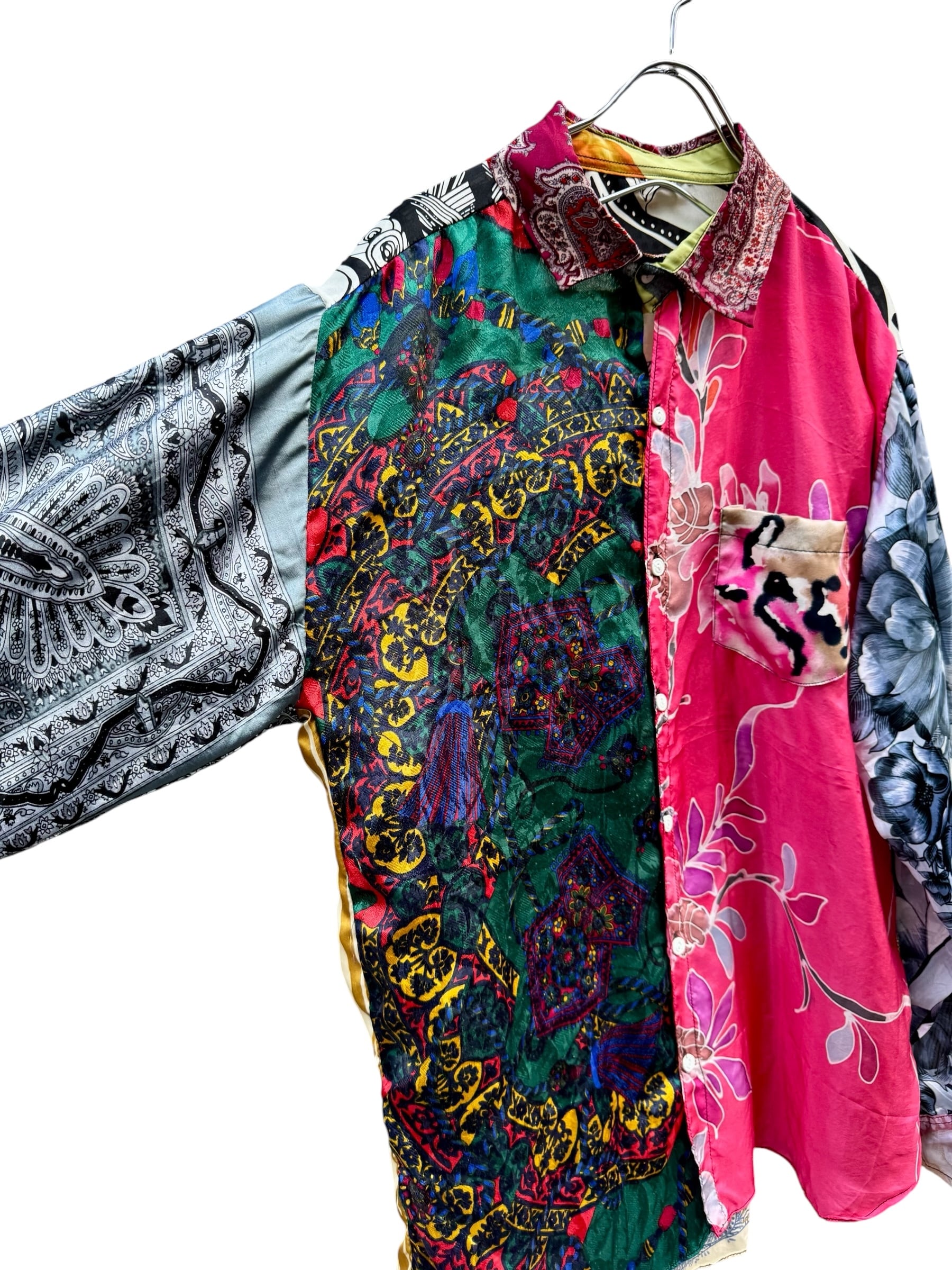 one off hand made crazy pattern design shirt / 完全一点もの ハンドメイド クレイジーパターンシャツ【USED/古着】