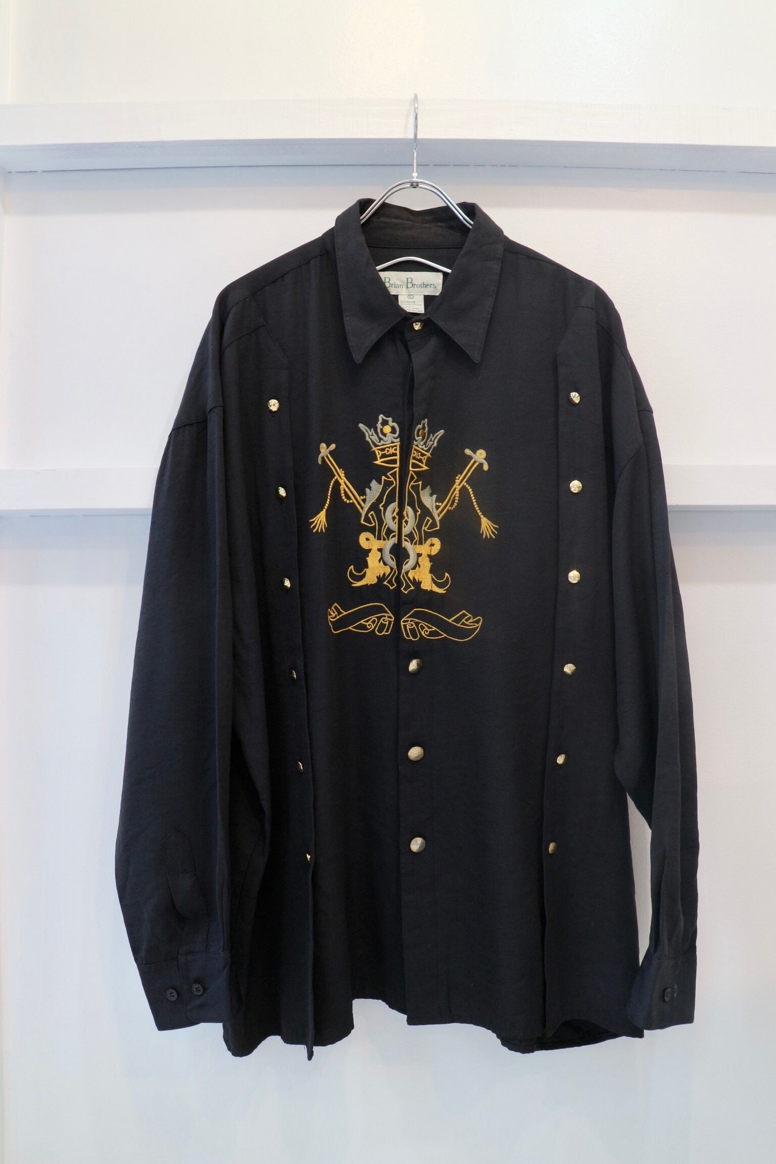 この様にブラックシャツでモードな雰囲気もありつつ、遊び心も感じられ、尚且つ普段使いもし易い、絶妙な立ち位置のシャツは中々お目にかかれないかと。