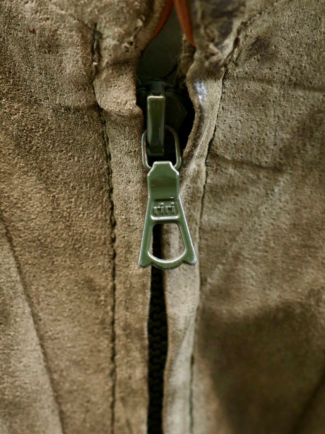 珍しいセージグリーンの色合いが目を惹く、スウェードレザージャケット。