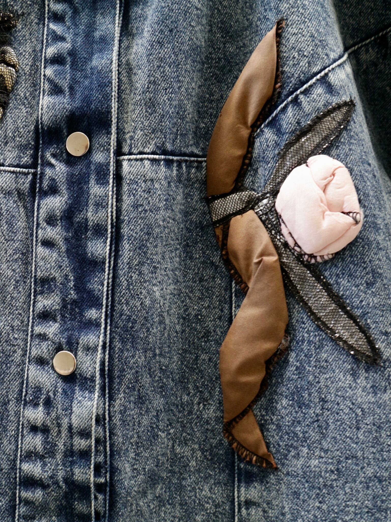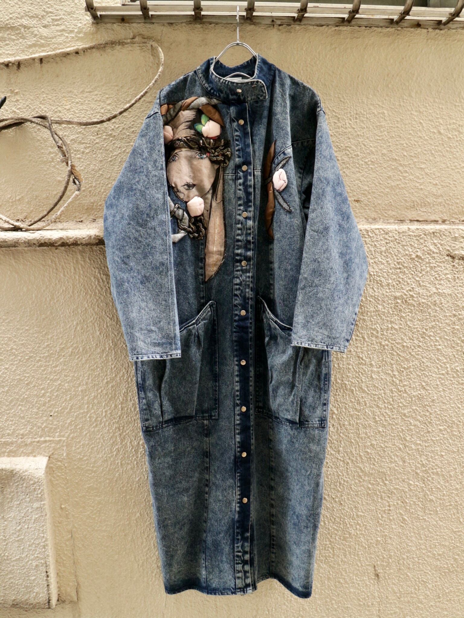 【USED】Artistic Patch Chemical Denim Maxi Coat パッチ装飾ケミカルデニムコート