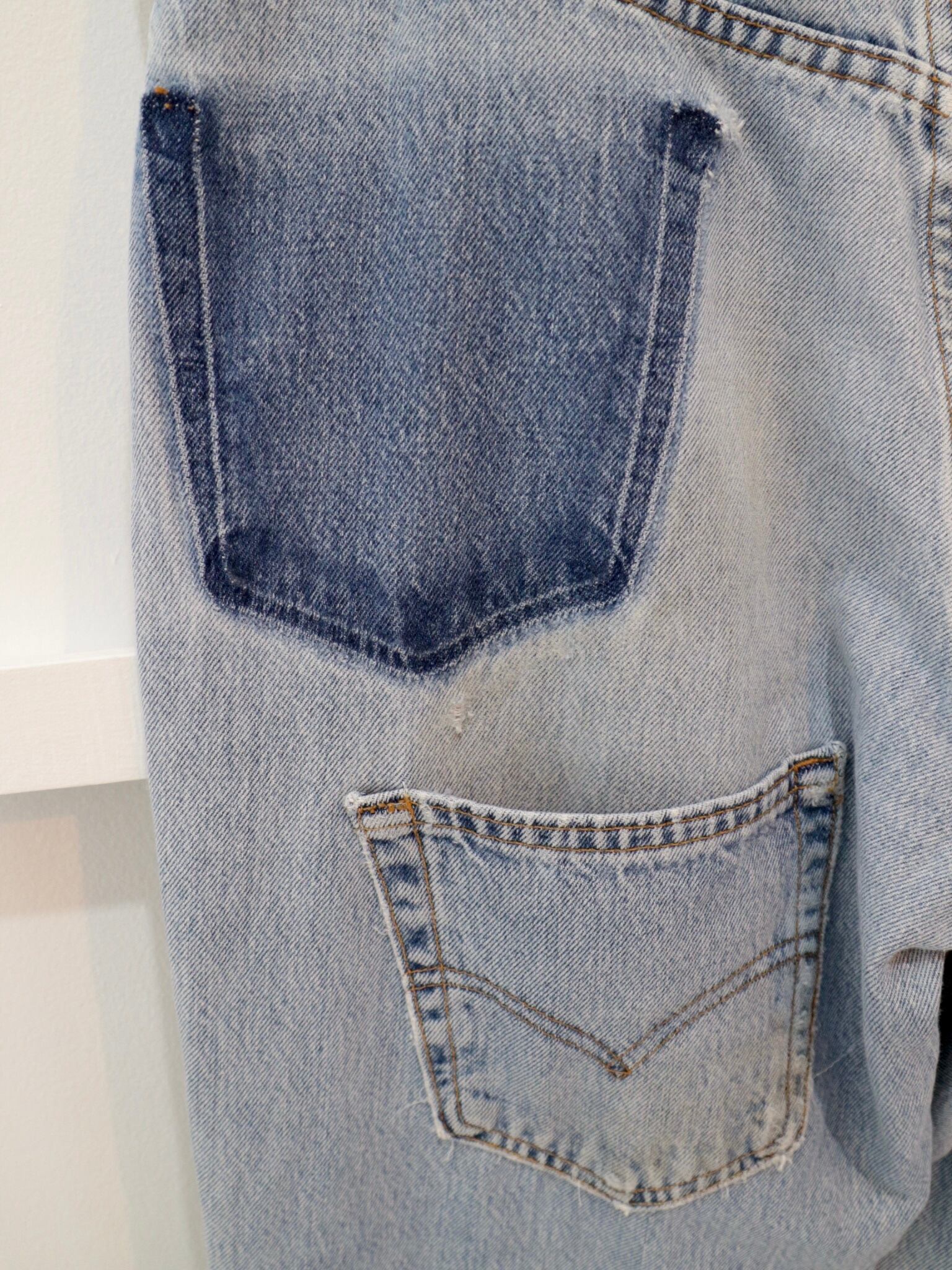 Levi's 550のワイドデニムをベースに、遊び心のあるリメイクデザインを施した一品。