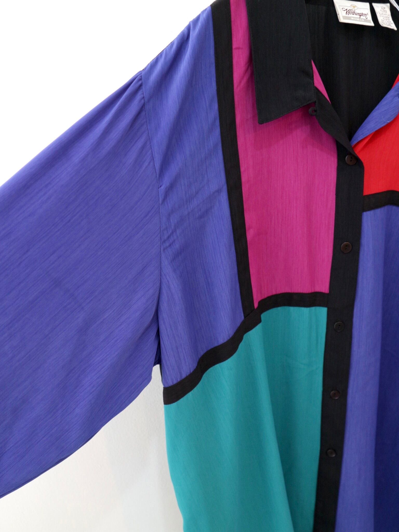 【USED/古着】"Mondrian look" pattern oversized shirt モンドリアン コンポジション柄 ビッグシャツ