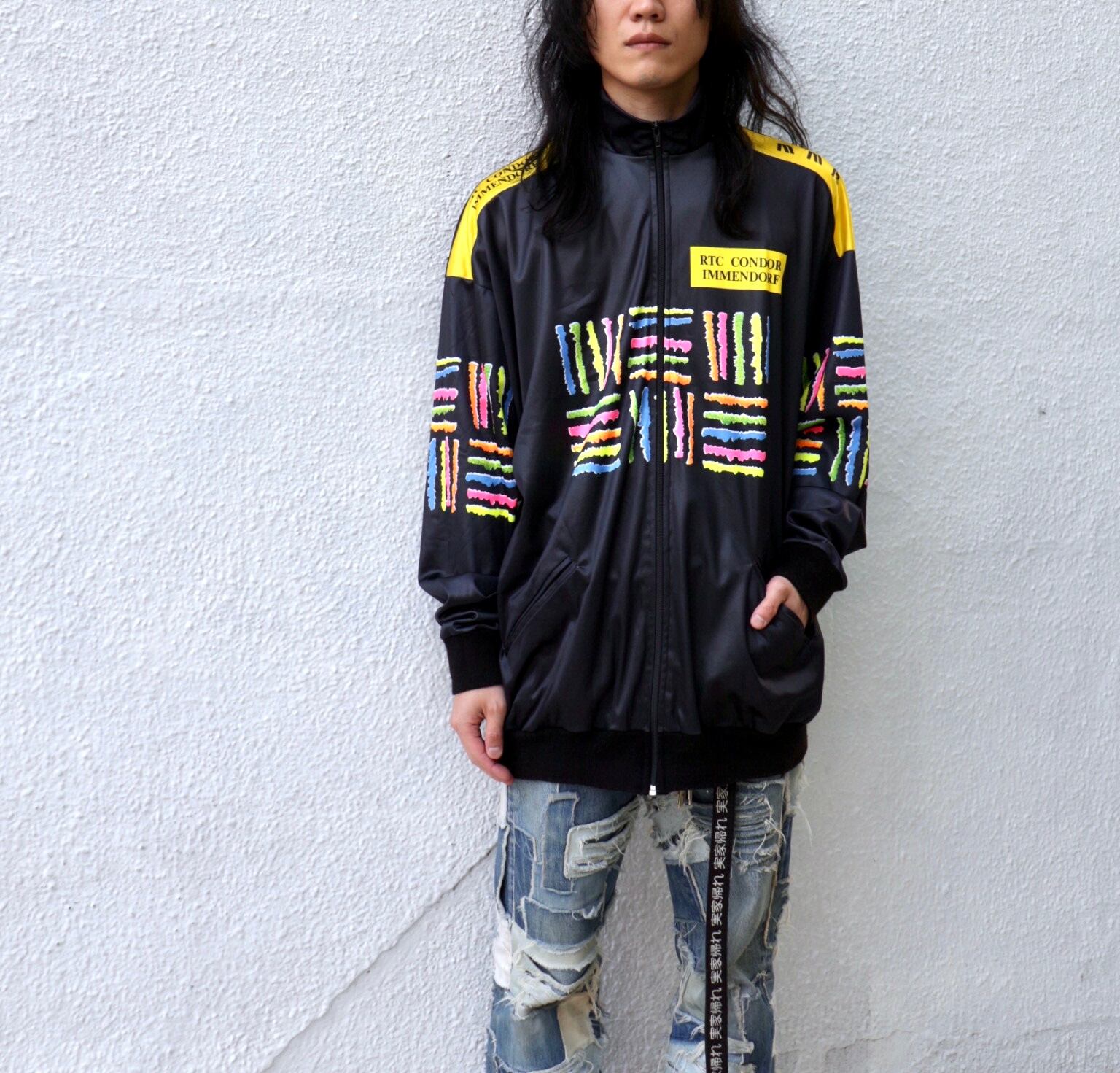 【USED/古着】"vintage MIKE SPORT" black × colorful pattern track jacket ヴィンテージ マイクスポーツ ジャージブルゾン トラックジャケット