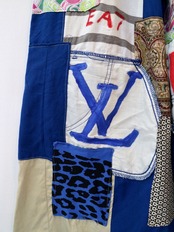 某ラグジュアリーブランドのロゴやマークを模したハンドペイント、パッチを配した