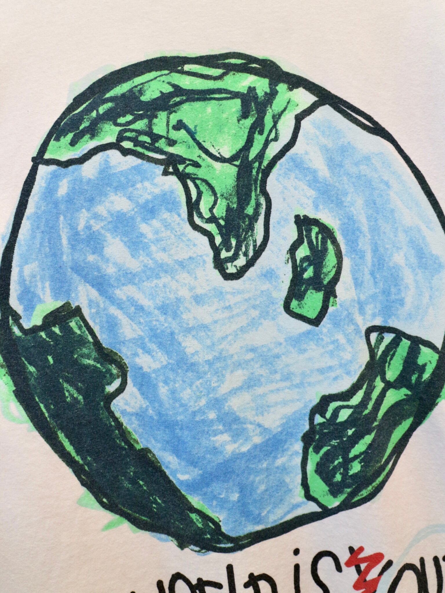 【USED/古着】the world hand drawn big tee 地球 イラストプリントビッグTシャツ