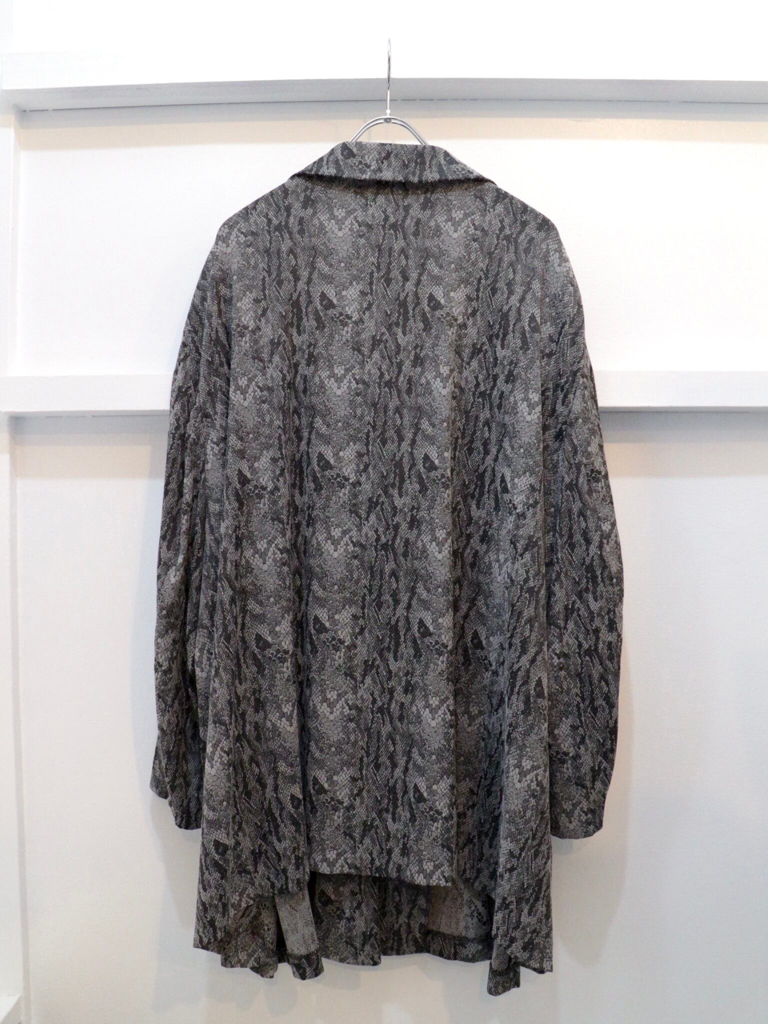 グレーベースのパイソン柄とオーバーサイズシルエットが目を惹くシャツジャケット。