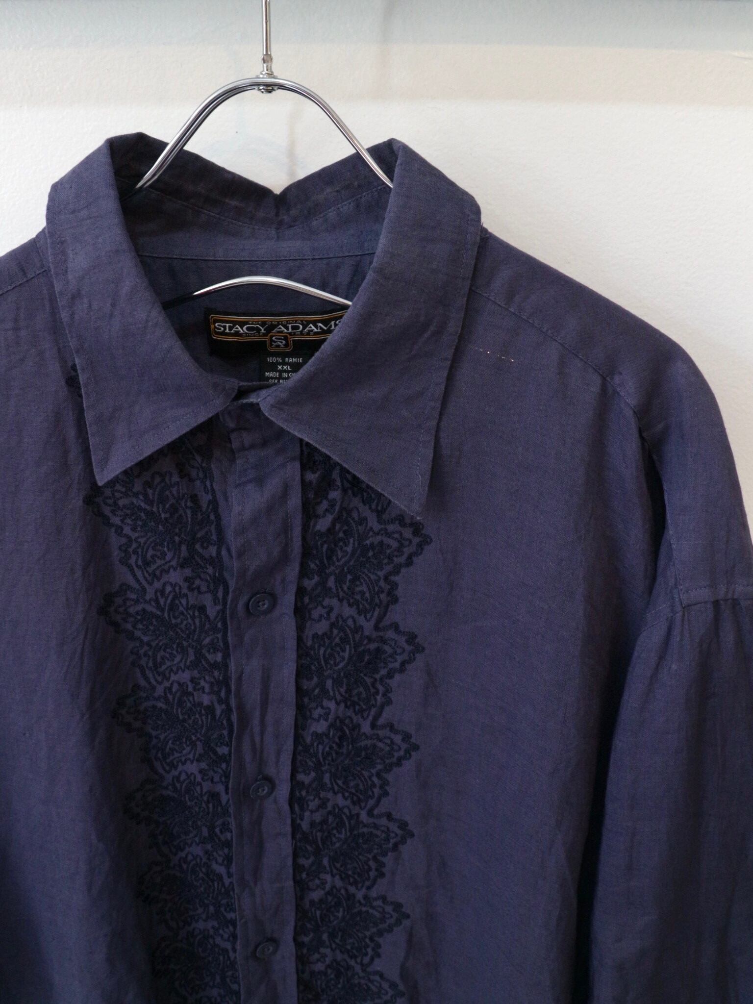 【USED/古着】botanical chain embroidery XXL loose linen shirt ボタニカルチェーンステッチ刺繍XXLサイズビッグリネンシャツ