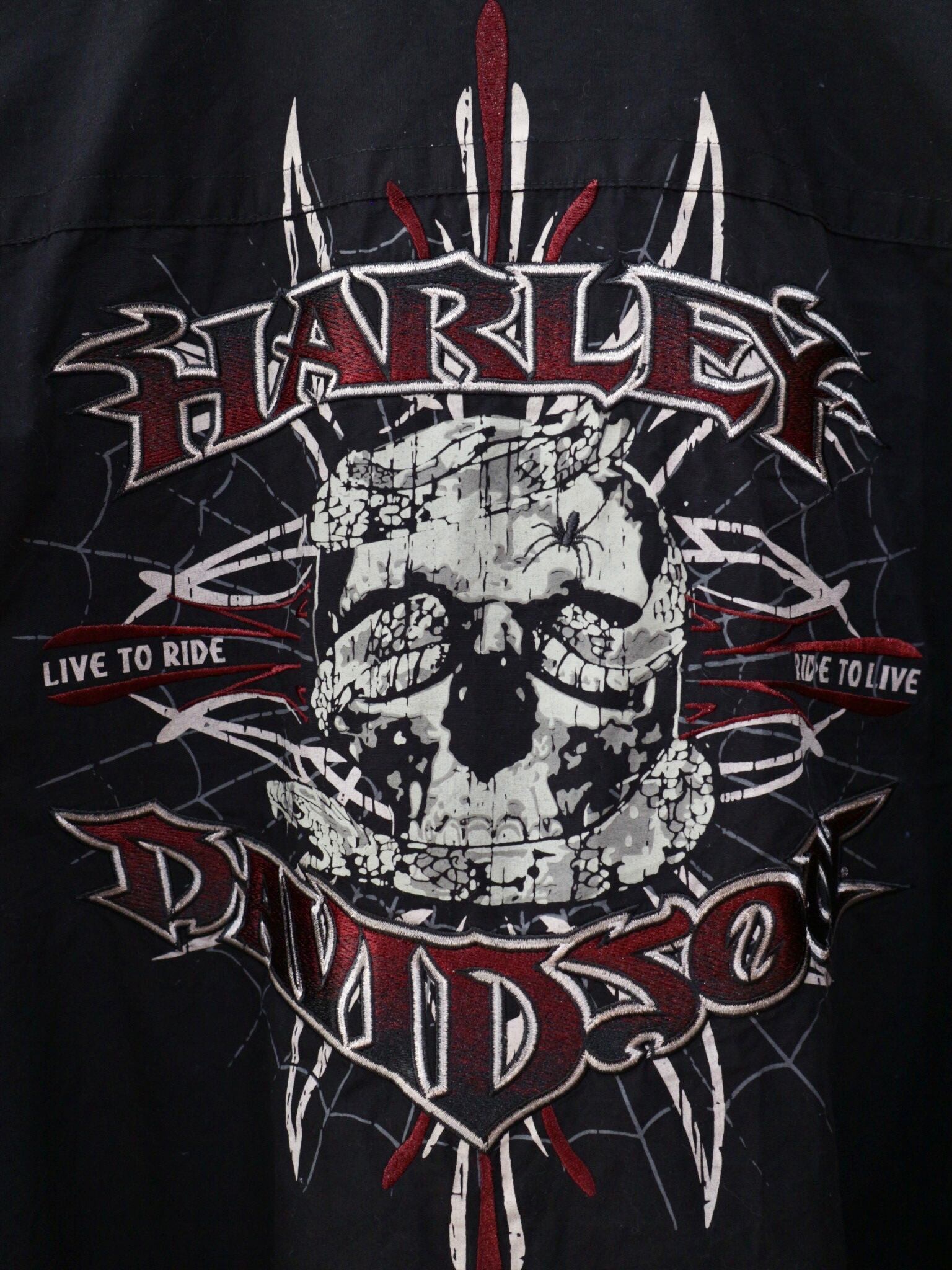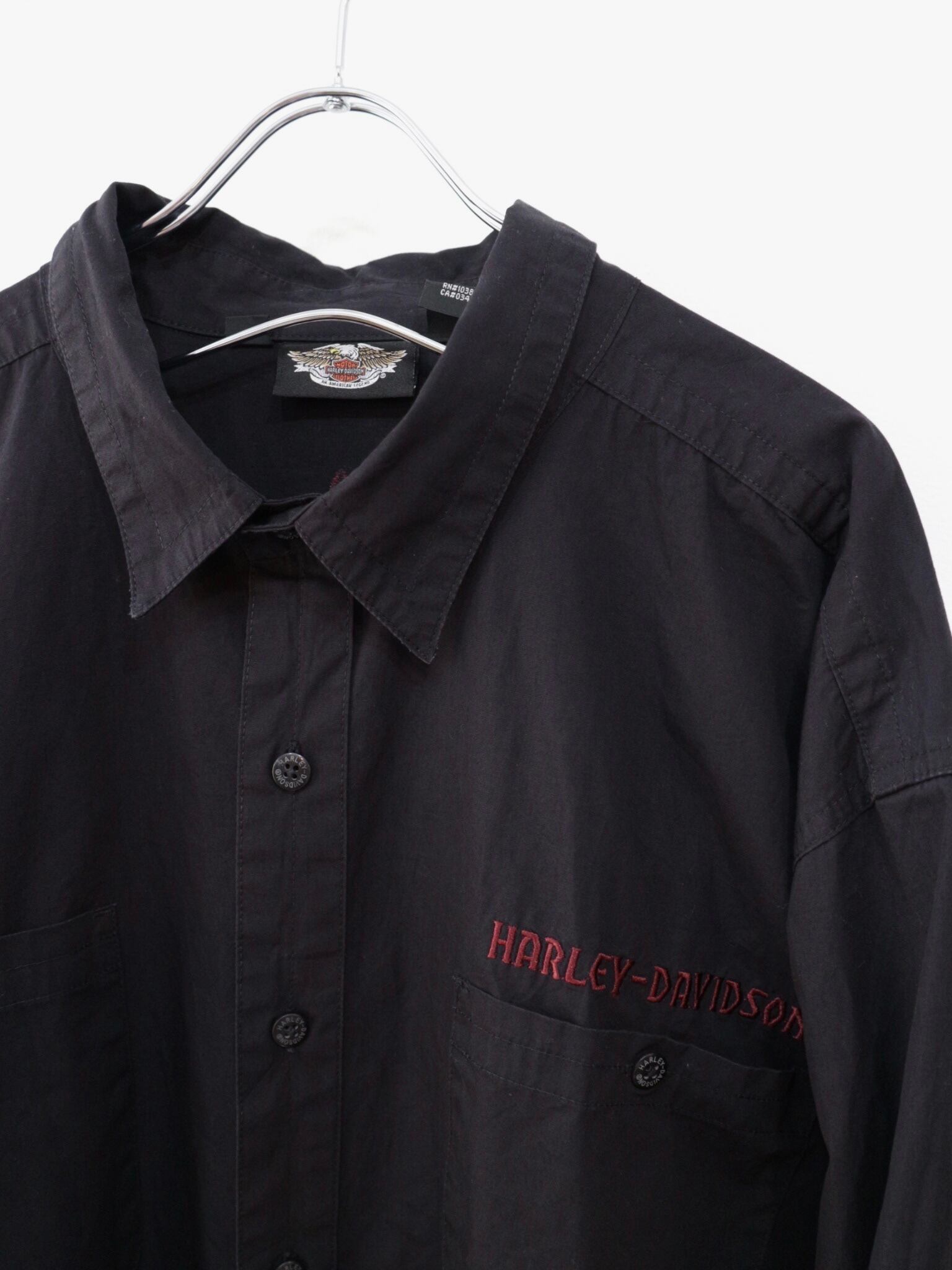【USED/古着】"HARLEY DAVIDSON" back printed & embroidery 2XL big shirt ハーレーダビッドソン バックプリント刺繍ビッグシャツ
