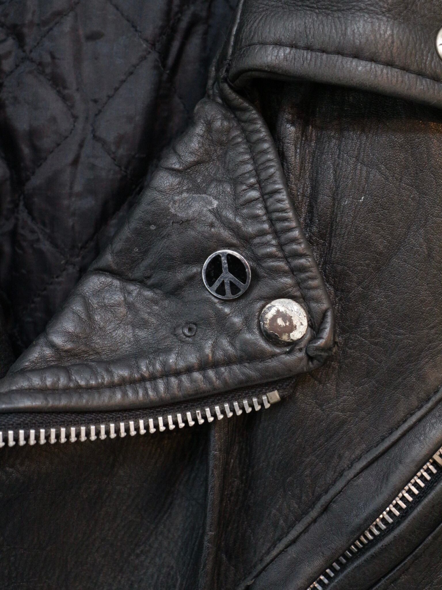 重厚なダブルのレザーライダースジャケットに、