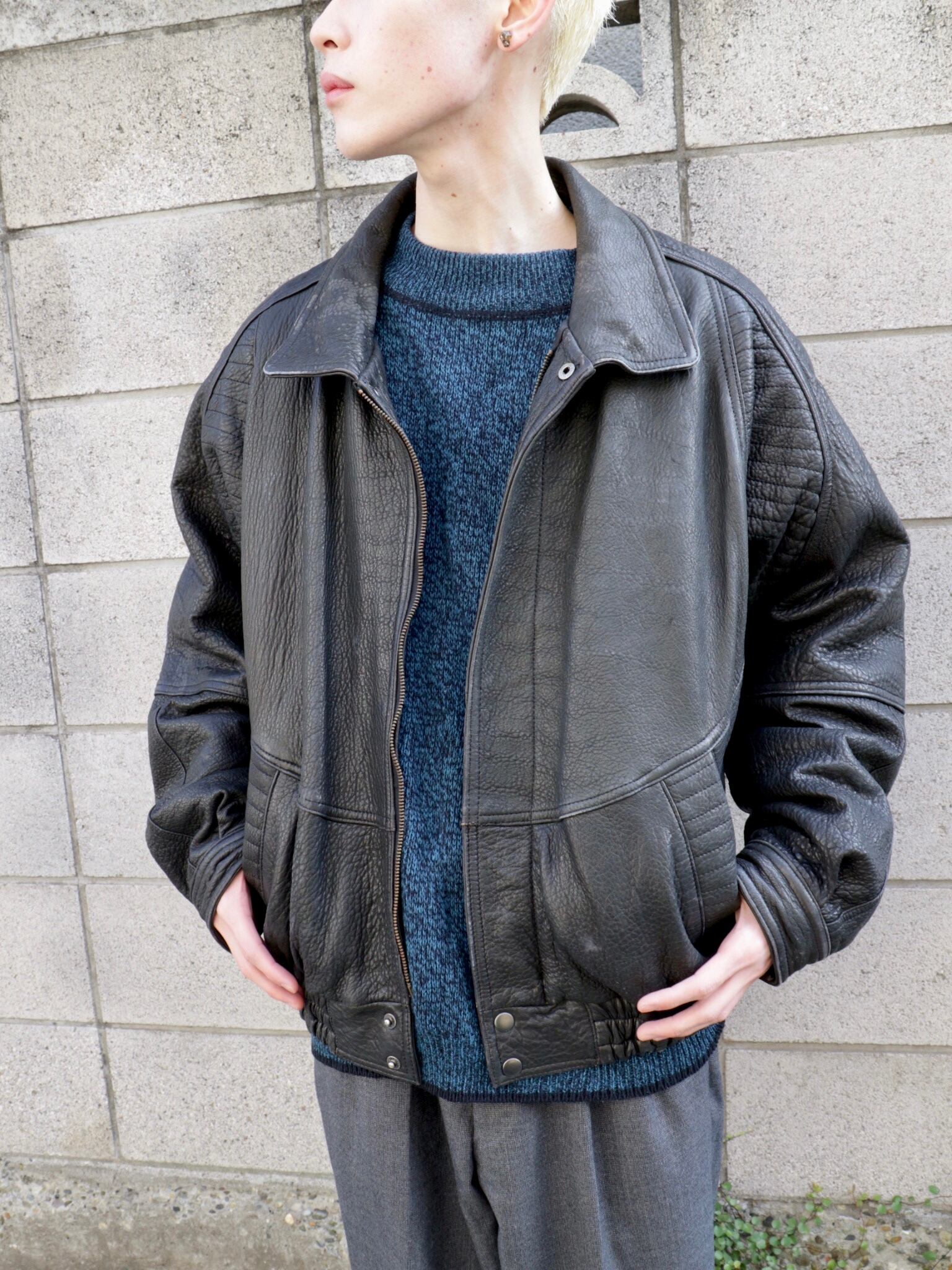 vintage dolman sleeve emboss leather jacket / ヴィンテージ ドルマンスリーブ型押しレザージャケット【USED/古着】