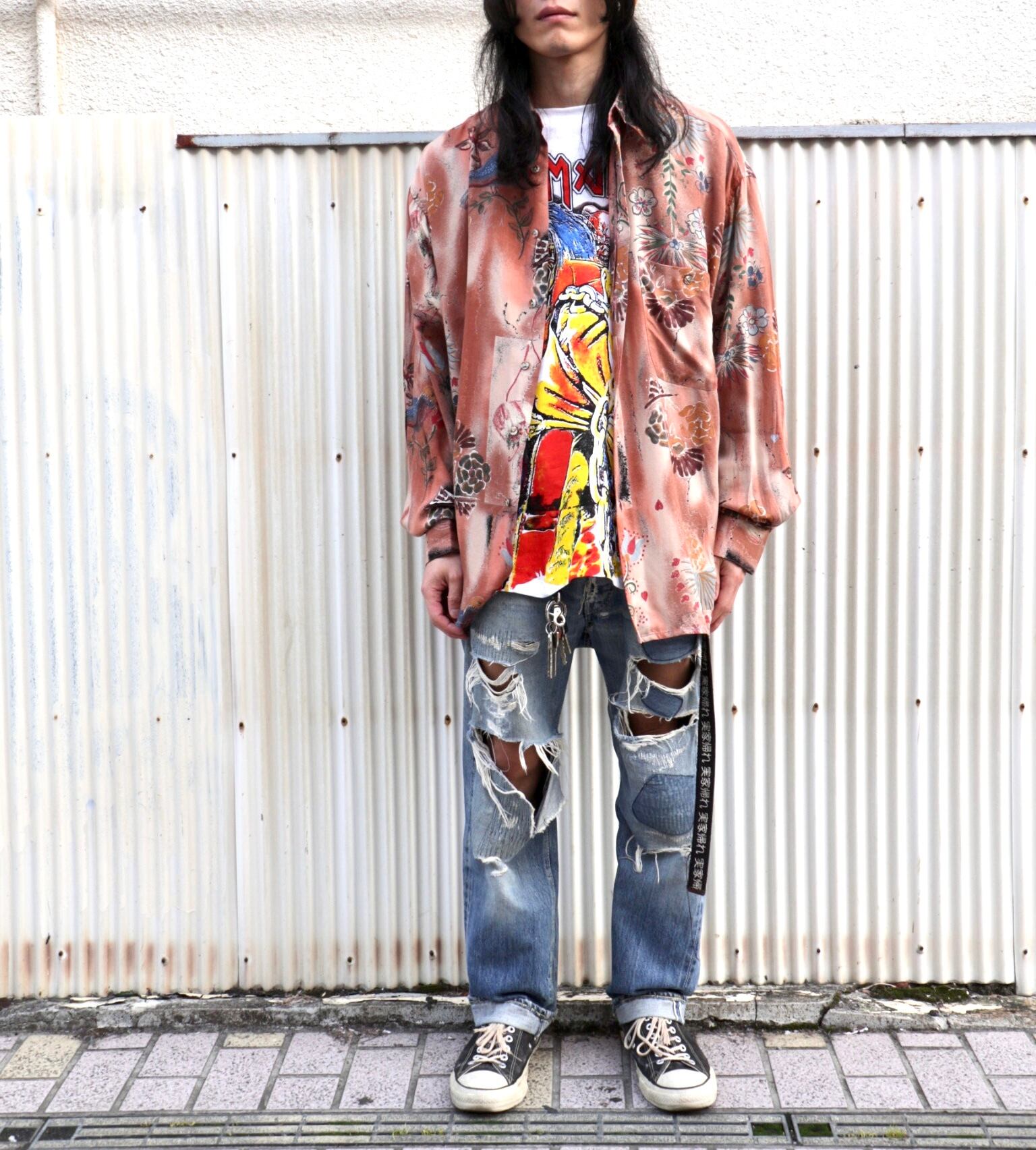 artistic pattern loose rayon shirt / アート柄 ビッグレーヨンシャツ【USED/古着】