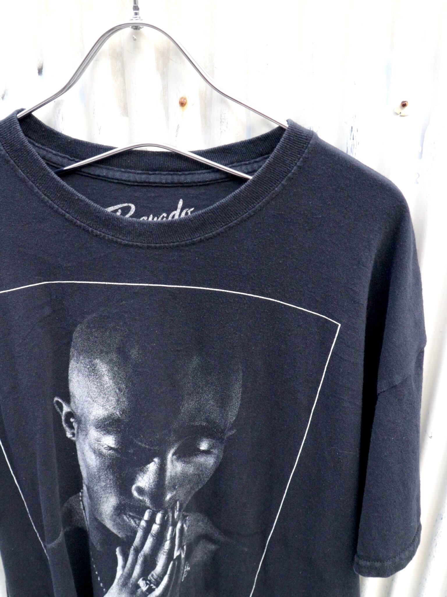 "TUPAC SHAKUR" faded black print-tee / ツーパック フェードブラックプリントTシャツ【USED/古着】