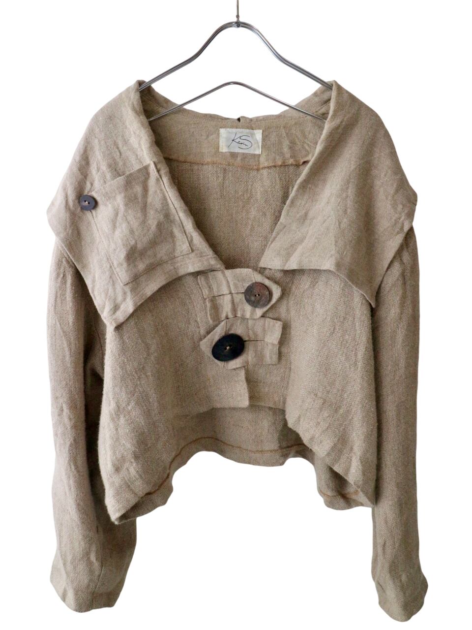 euro-vintage design linen short jacket / ユーロヴィンテージ デザインリネンショートジャケット【USED/古着】