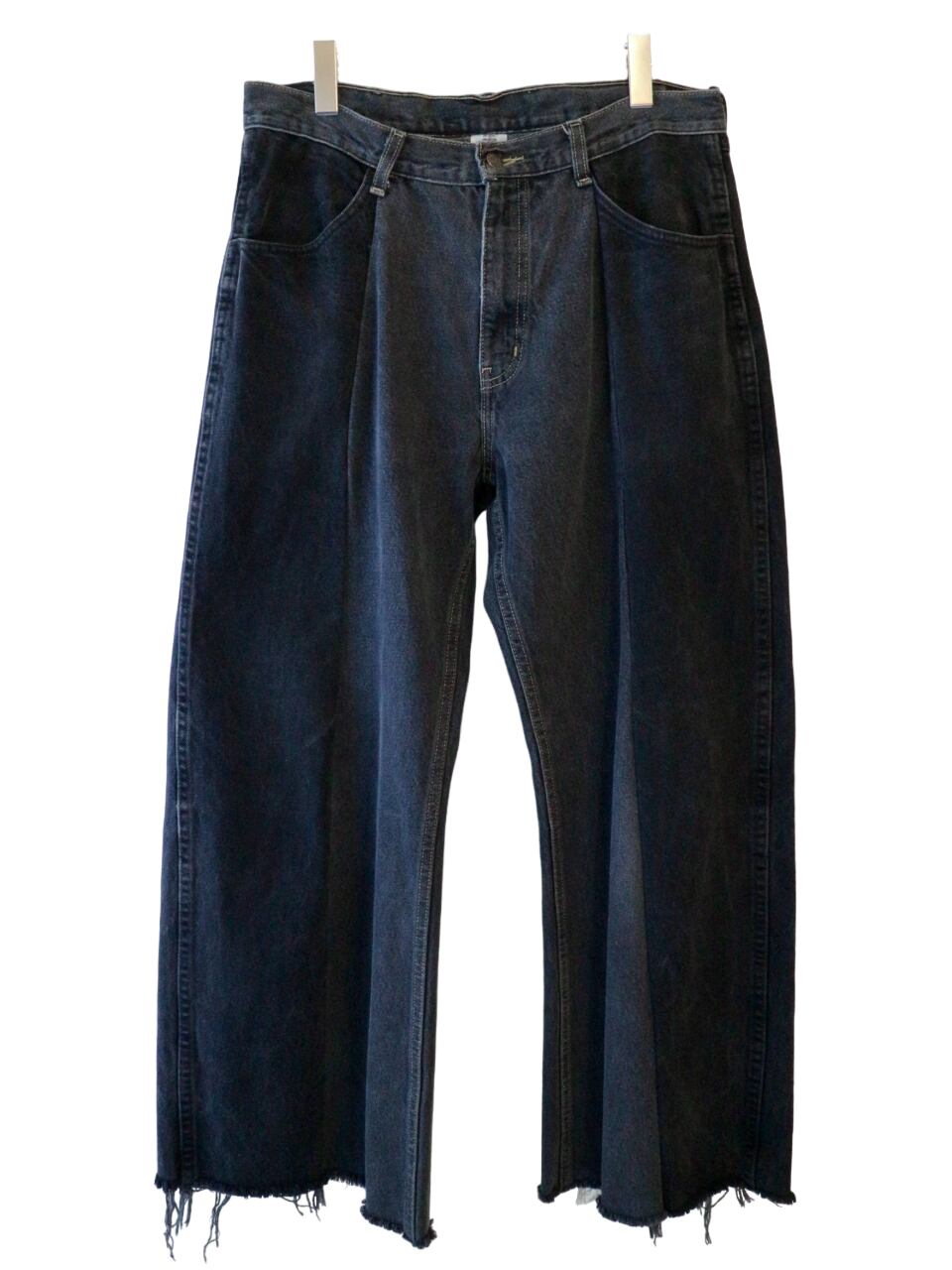 "custom" 再構築 black bicolor wide denim pants / カスタム リメイク ブラック バイカラーワイドデニムパンツ【USED/古着】