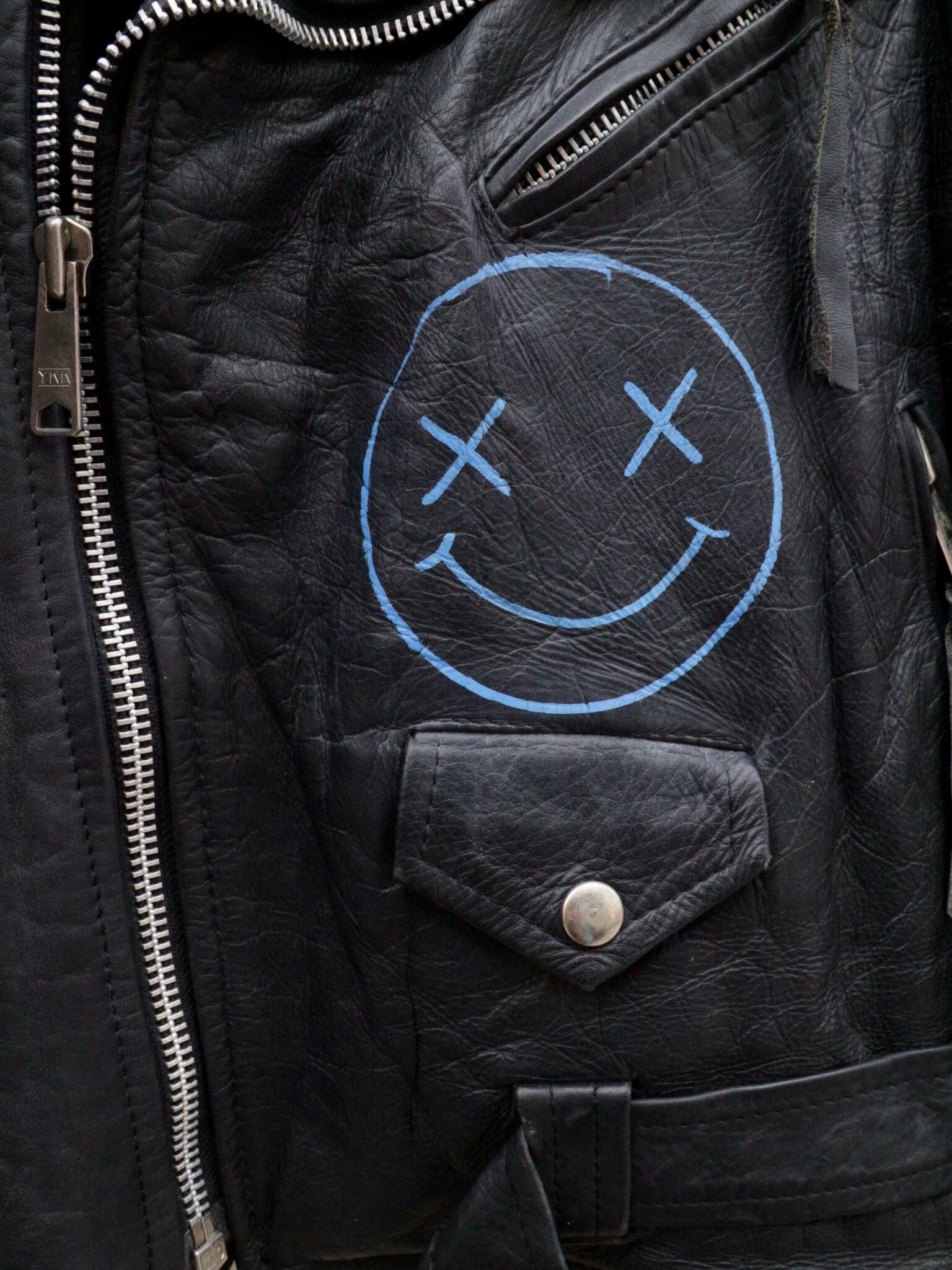 【vintage custom hand-painted leather double riders jacket】